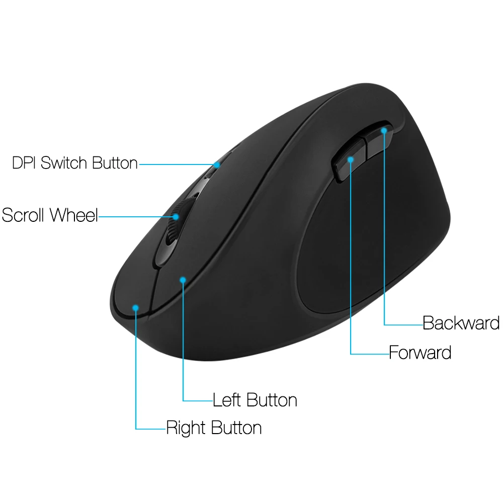 Delux M618SE wireless vertical mouse, adopting human ergonomic design, compared with the M618 and M618Plus the shape of M618SE is smaller and more flexible. 2.4G wireless 10M effective distance, makingyour work more convenient and effecient