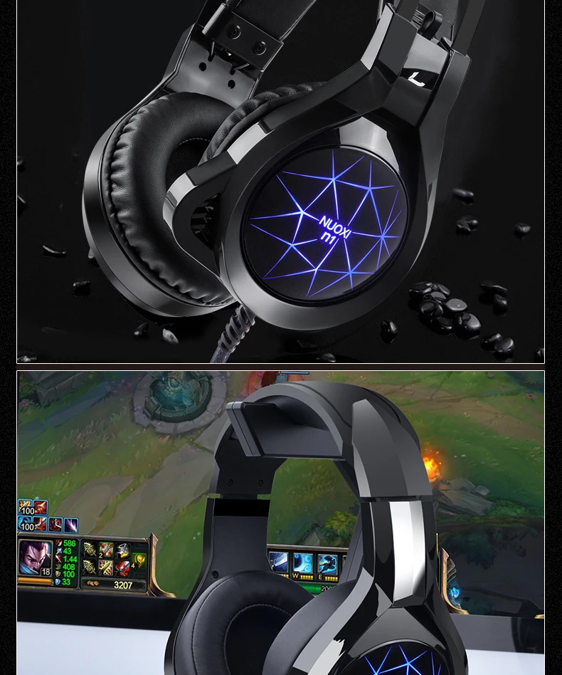 NUOXI N1 Gaming Headphone casque Computer Stereo Deep Bass Game Earphone Headset with Mic LED Backlight for PC Gamer