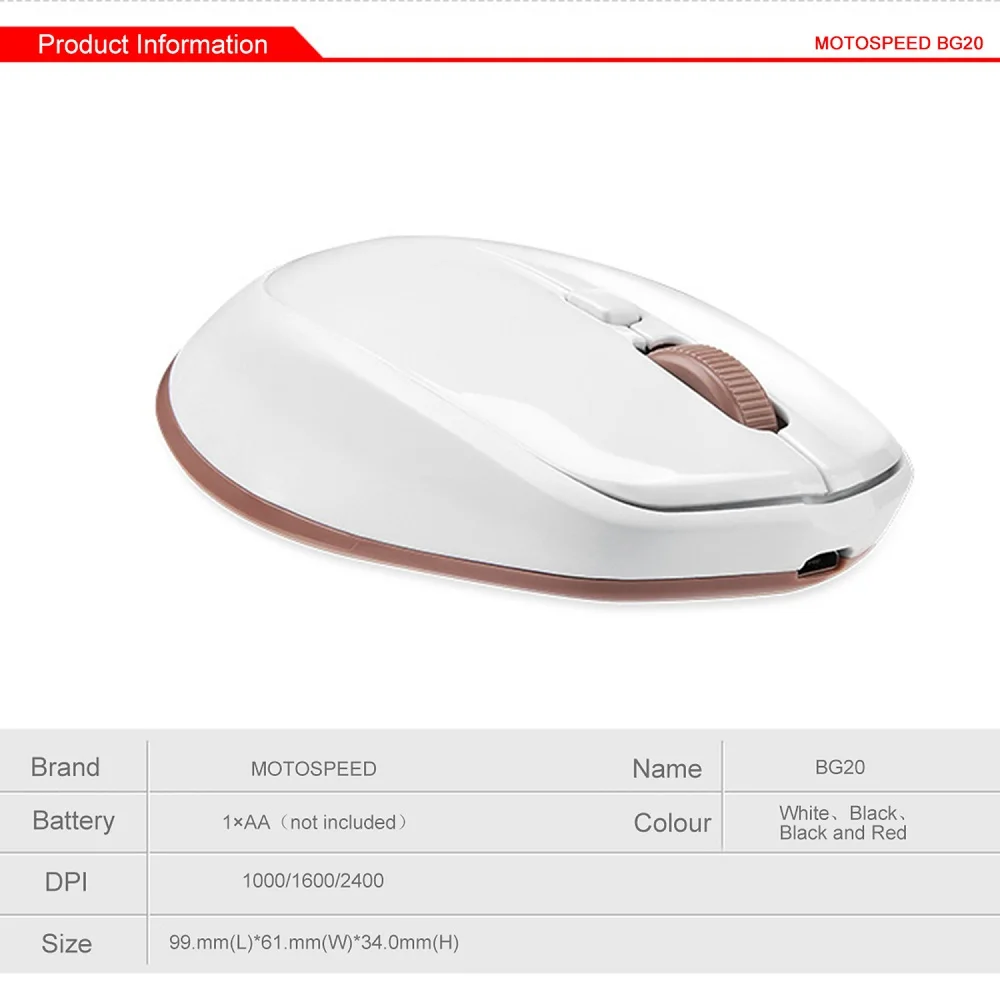 Special Price - Motospeed BG20 2.4GHz Wireless Gaming Mouse 2400DPI Bluetooth 3.0 Optical Mini Mice For Tablet PC /Computer / Laptop /Gamer Very Good