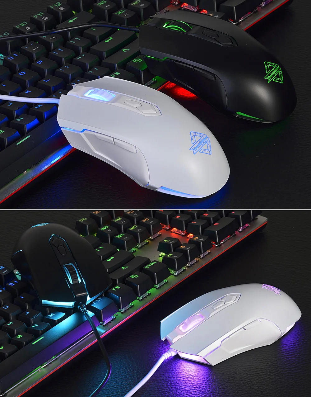 Ajazz AJ52 7 RGB Backlit Modes 2 well-designed side buttons Wired Gaming Mouse Adjustable DPI 750/1000/1250/1500/1750/2000/2500. It Can be applied in many Operating Systems, Compatible for Windows Mac with Mute Switch